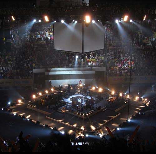 Intro (Build-up): Stage lights wash the arena in a tranquil blue. A single front light spotlights the singer.